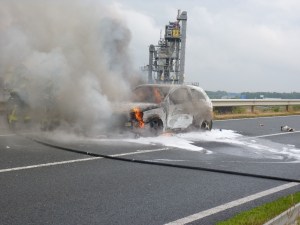PKW Brand nach Verkehrsunfall Verkehrsunfall |