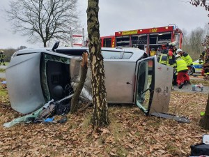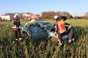 H3Y Eingeklemmte Person, PKW brennt Verkehrsunfall |