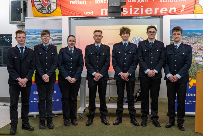 In die Einsatzabteilung: Tristan Voss, Marcel Umnuß, Luc Fangmeyer, Maximilian Kley In dem Musikzug: Hugo Hölscher, Johannes Hulsmeier, Lea-Marie Gebbe |