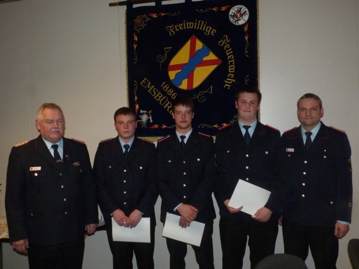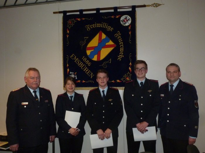 Vom Feuerwehrmann-Anwärter zum Feuerwehrmann: Jenny Kley, Luc Scheffer, Lukas Janning, Katharina Kock (fehlend) |