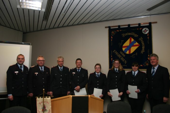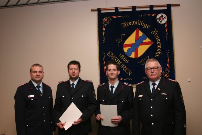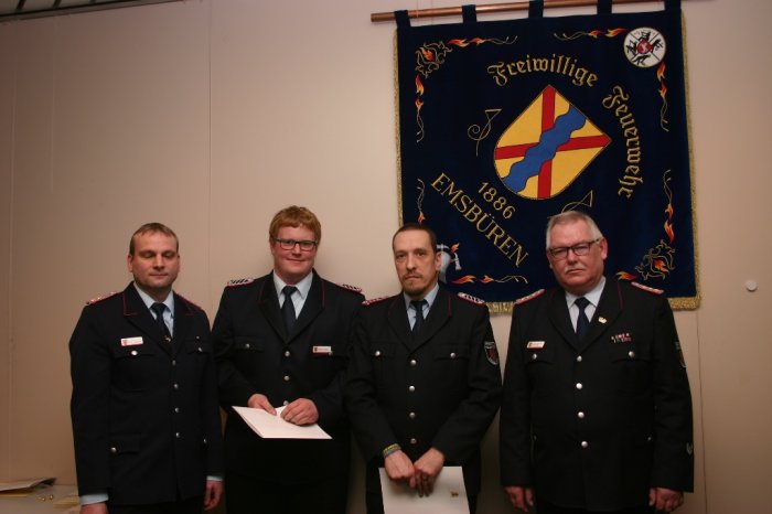 In seinem einführenden Jahresbericht blickte Kley auf ein einsatzmäßig ruhiges Jahr 2015 zurück, an dessen Ende insgesamt 94 Einsätze zu Buche schlugen. Die Einsätze unterteilen sich wiederrum in 35 Brandeinsätze und 59 Hilfeleistungen. Besonders hob Kley den Strohbrand im Lescheder Feld, den Bootsbrand auf der Ems, die zwei Kellerbrände und den Wohnhausbrand in Elbergen hervor. Aber auch zwei Unwetterlagen im März und Juli mit zahlreichen Sturmeinsätzen waren zu bewältigen. Erfreulicherweise wurde die Feuerwehr Emsbüren im letzten Jahr von schwerwiegenden Verkehrsunfällen verschont. Leider waren dennoch bei den Einsätzen wieder Tote und Schwerverletzte zu beklagen. Diese Einsätze forderten das ganze Können der Feuerwehrkameradinnen- und kameraden. Insgesamt, so resümierte Kley, arbeitete die Feuerwehr im Jahr 2015 2.123 Einsatzstunden ab. Dieses Einsatzspektrum sei nur durch eine stetige Aus- und Fortbildung zu bewältigen. So fielen im vergangenen Jahr an 26 Übungsabenden weitere 1.994 Stunden Übungsdienst an. Auch die Ausbildungen in den Sondergruppen, wie der Höhenrettung, dem Gefahrgutzug oder der TEL kamen mit 525 Stunden nicht zu kurz. An weiteren 350 Stunden wurden technische Dienste geleistet. An 31 Lehrgängen zur Aus- und Weiterbildung nahmen Kameradinnen und Kameraden sowohl auf Landkreisebene als auch an der Nds. Akademie für Brand- und Katastrophenschutz teil. Darüber hinaus seien, so Kley, weitere Arbeitsstunden für die Umrüstung vom Analog- zum Digitalfunk geleistet worden. Ebenso seien die Renovierungsarbeiten am Spritzenhaus in Eigenleistung erfolgt. Hier gilt auch der Gemeinde Emsbüren ein Dank, die die Materialien für den Umbau finanzierte. Auf zahlreichen gemeindlichen Veranstaltungen sei man präsent gewesen, wie beispielsweise das Pfarrfest oder der Herzogmarkt. Auch personell hat sich im vergangenen Jahr etwas getan, so ist Tobias Flödder aus der Feuerwehr ausgetreten. Im Jahr 2015 gehörten der Feuerwehr Emsbüren insgesamt 194 Mitglieder an, die sich in 73 Mitglieder der Einsatzabteilung, 15 Mitglieder der Kinderfeuerwehr, 29 Mitglieder in der Jugendfeuerwehr, 40 Mitglieder im Musikzug, 34 Mitglieder in der Alters- und Ehrenabteilung sowie 3 Betreuerinnen der Kinderfeuerwehr aufteilen. Besonders erfreut zeigte sich Kley über die Ersatzbeschaffung für den Einsatzleitwagen, die in Kürze abgeholt und eingeweiht werden kann. Abschließend bedankte sich Werner Kley bei allen Kameradinnen und Kameraden für ihren Einsatz. Weiterhin galt sein Dank der Verwaltung und dem Rat der Gemeinde Emsbüren.