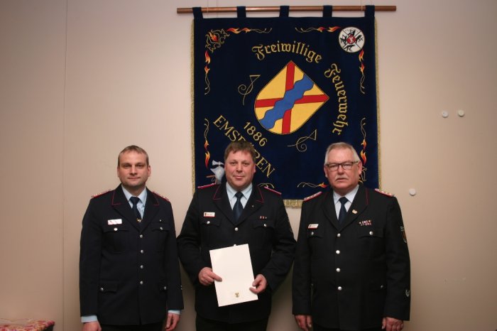 Ein besonderer Tagesordnungspunkt stellte die Neuwahl des Gemeindebrandmeisters dar. Werner Kley wird in diesem Jahr nach 16 Jahren altersbedingt das Amt in jüngere Hände abgeben müssen. Zur Wahl stand der derzeitige Zugführer der Feuerwehr Emsbüren Marco Lögering. Bevor die Wahl jedoch beginnen konnte, dankte die Versammlung mit Standing-Ovation und Applaus Werner Kley für seine Dienste als Gemeindebrandmeister. In der anschließenden Wahl wurde Marco Lögering einstimmig als Nachfolger für Werner Kley vorgeschlagen. Lögering dankte der Versammlung für das ihm entgegengebrachte Vertrauen, besonders dankte er jedoch Werner Kley, der ihm eine gut strukturierte und tatkräftige Feuerwehr übergebe. Dieses einstimmige Ergebnis werde Bürgermeister Overberg nun in den entsprechenden Gemeindegremien vorbringen. Die offizielle Amtsübergabe sei für September vorgesehen, nachdem der Gemeinderat den erforderlichen Beschluss gefasst habe.