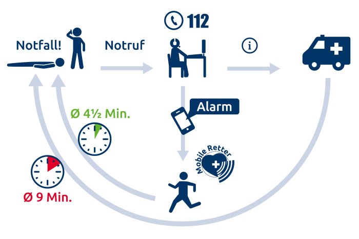 Die qualifizierten Ersthelfer sind durch ihre Ausbildung und medizinische Ausrüstung in der Lage, die notwendigen Maßnahmen ohne großen Zeitverlust durchzuführen und somit die Überlebenschancen deutlich zu erhöhen.